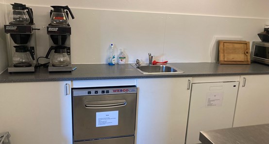 Huset har et stort anretterkøkken, handicaptoilet samt almindeligt toilet.