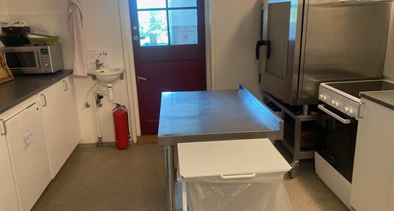 Huset har et stort anretterkøkken, handicaptoilet samt almindeligt toilet.